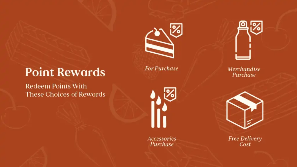 Setiap transaksi yang kamu lakukan sebagai member bukan hanya soal belanja kue enak—tapi juga kesempatan untuk mengumpulkan poin dan menukarkannya dengan hadiah-hadiah menarik! Mulai dari potongan harga, merchandise eksklusif, hingga layanan pengiriman gratis, semua bisa kamu dapatkan hanya dengan menukarkan poin yang kamu miliki. Jadi, yuk cek hadiah-hadiahnya dan mulai rencanakan penukaran poinmu!
